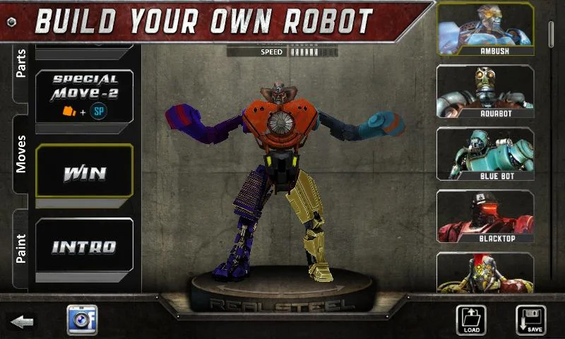 Experience the fights with the following Robots from the movie: – Atom ‘The People’s Champion’; Zeus ‘King of the Robots’; Twin Cities ‘Two Headed Tower of Power; Ambush ‘The Comic Book Crusher’, Noisy Boy ‘The Manga Mangler’; Midas ‘The Gold-Blooded Killer’; Metro ‘Frankenstein’s Monster of the Ring’; Gridlock ‘The Bronzed Body Builder Bot'; Blacktop ‘The Bot Out of Hell’; Six Shooter ‘The Sheriff of RoboTown’; BlacJac ‘ The Casino Bot with an Amazing Hand’; Blue Bot ‘The Electric Blue Brawler’; Aqua Bot ‘The Diver Bot from the Deep’.